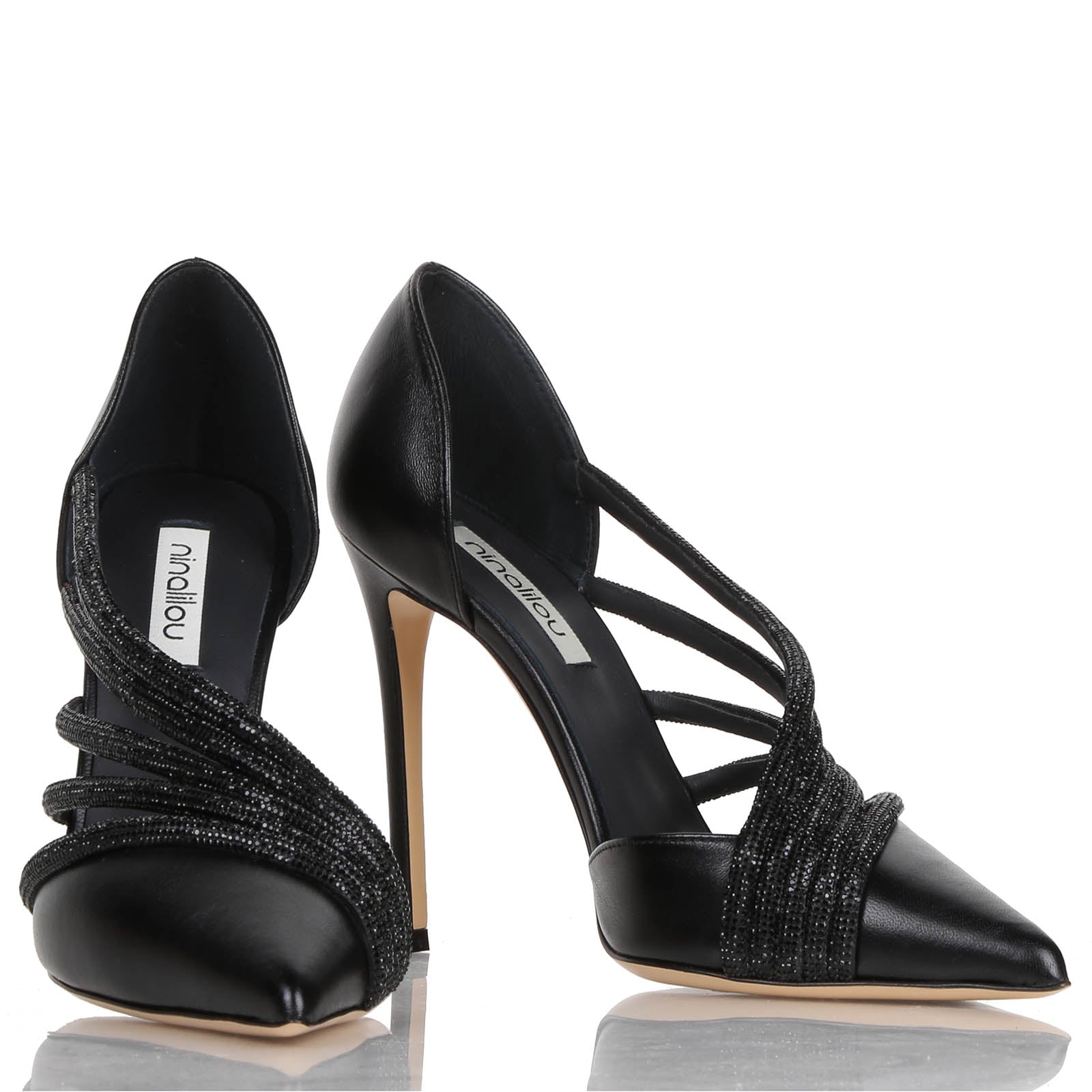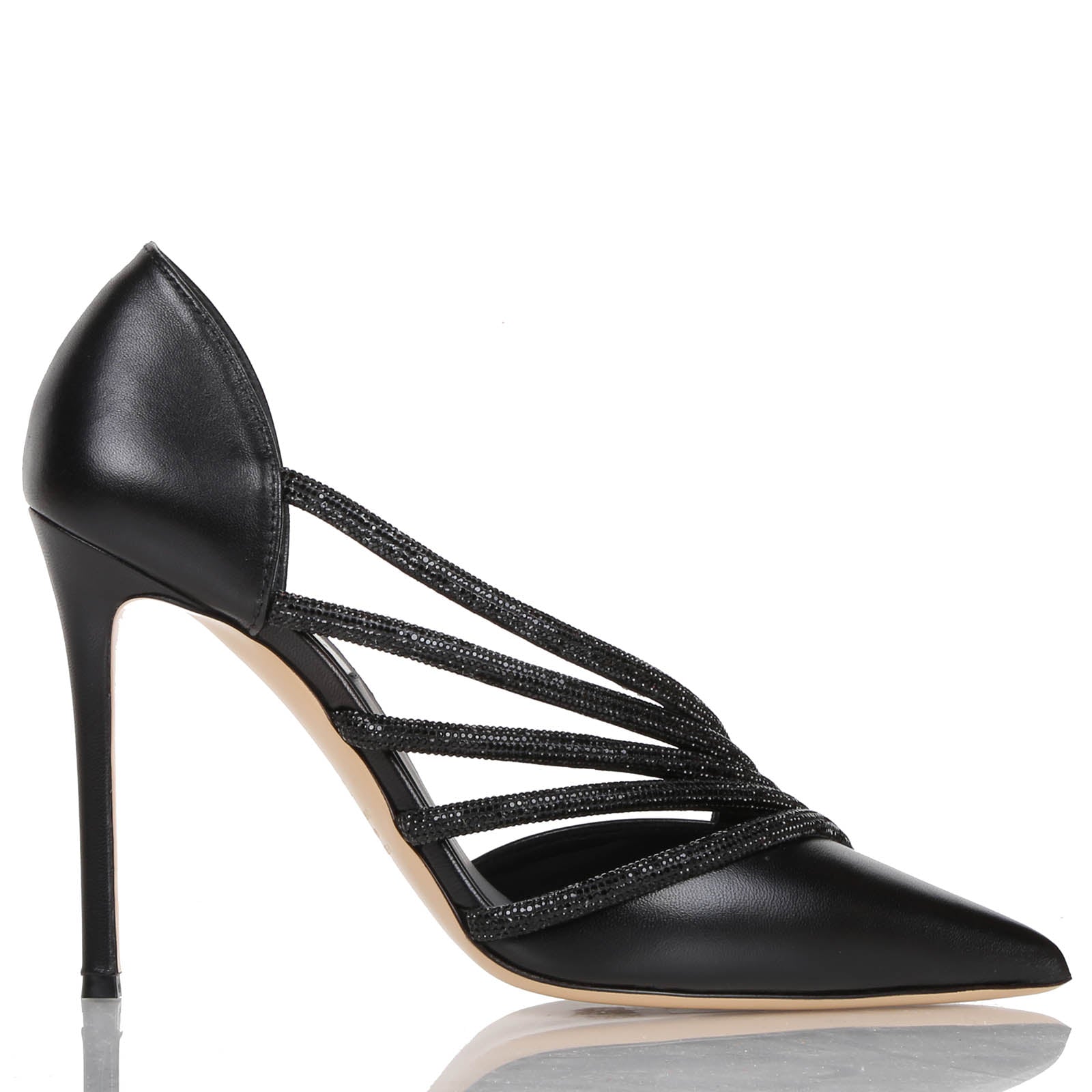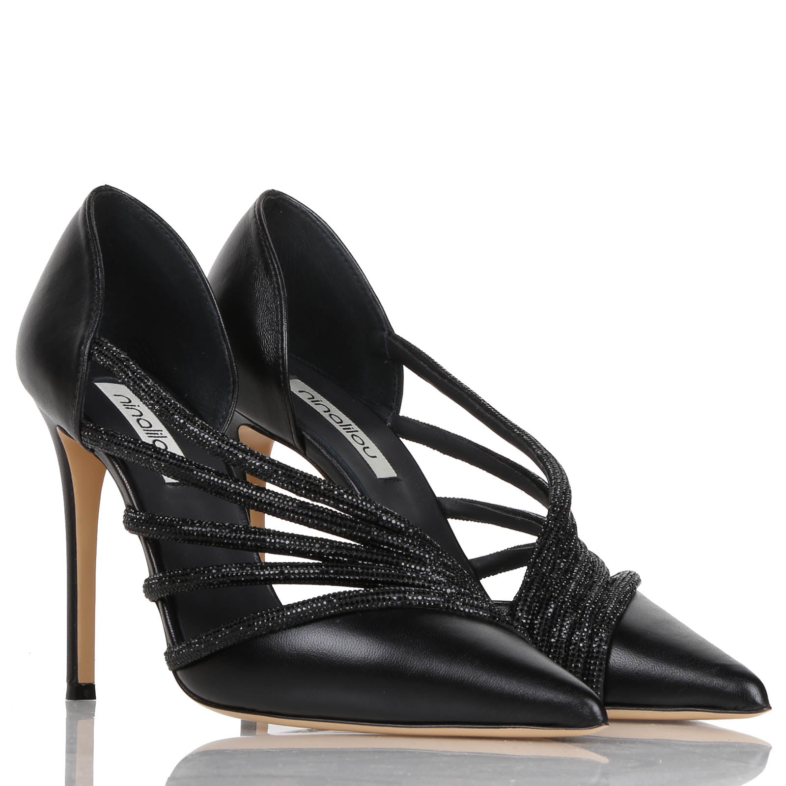 DÉCOLLETÉ IN MORBIDA NAPPA CON APPLICAZIONE DI STRASS. SUOLA IN CUOIO. TACCO 10,5 CM.