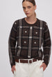 Maglia jacquard scozzese con ricamo gioiello