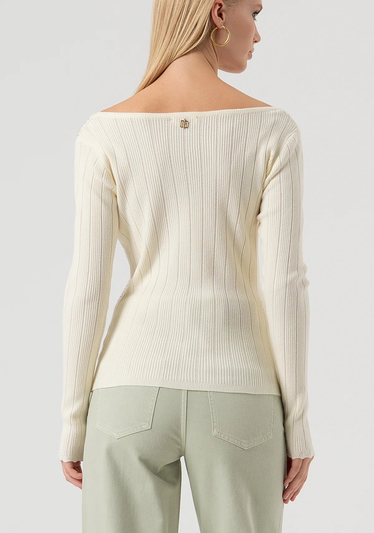 Maglia slim a costine con strass, scollo Madonna, e con maniche lunghe. SKU:FR25WT7029K50401-508-FA