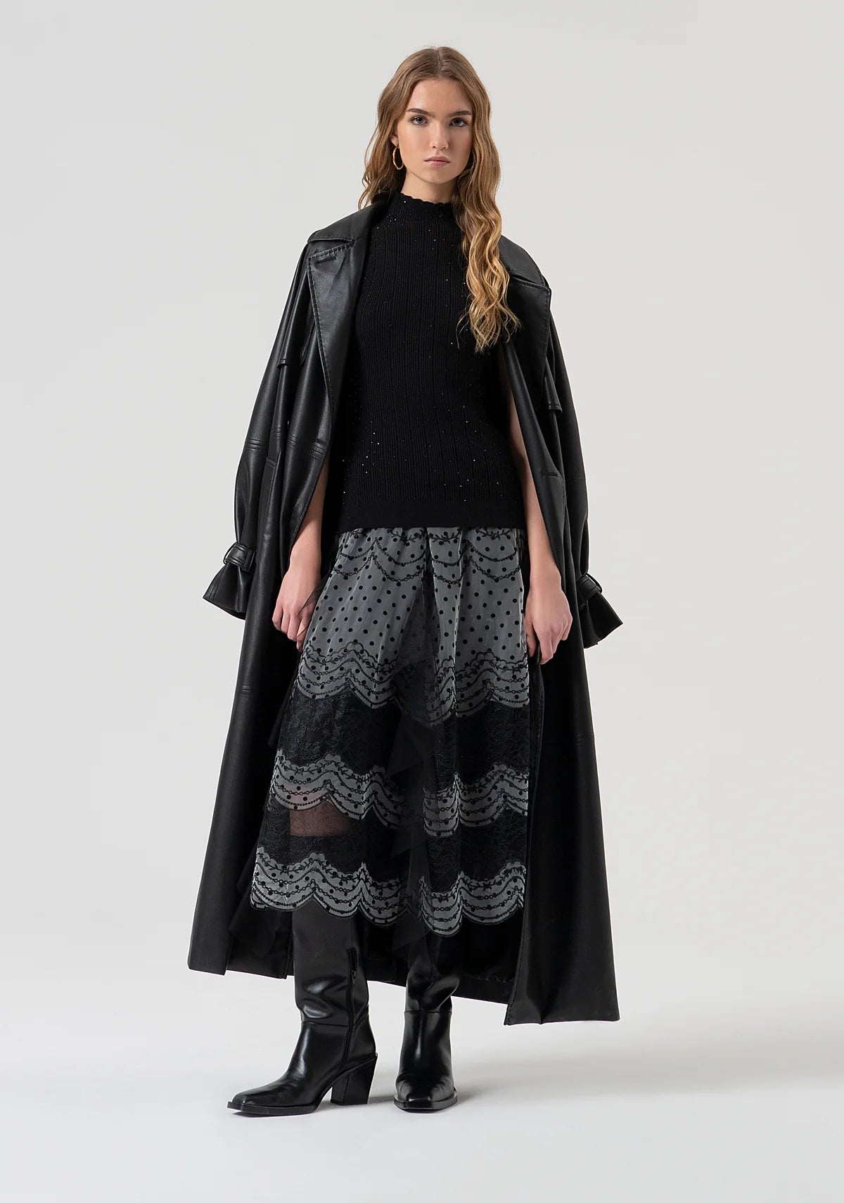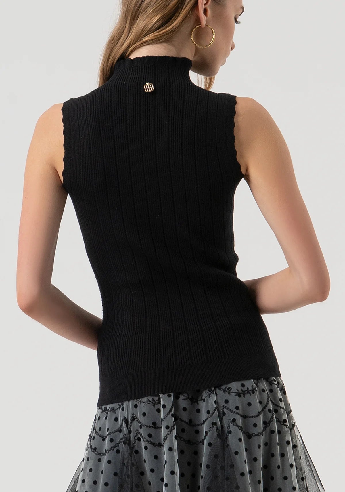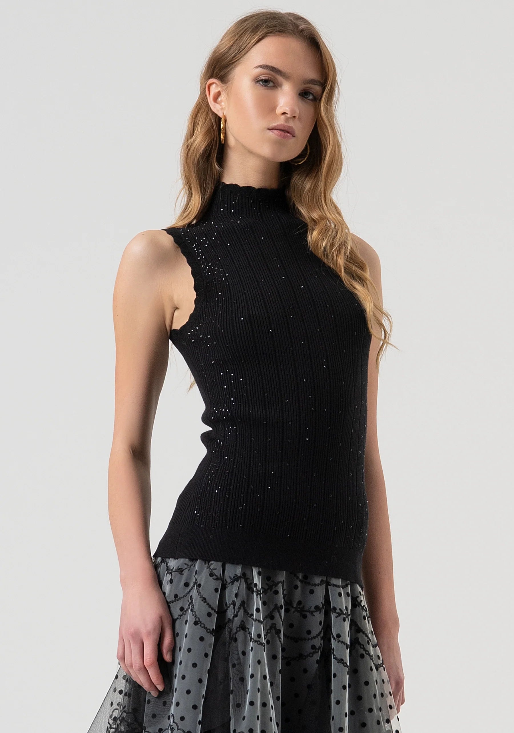 Top senza maniche in maglia a costine, con strass luminosi, e con collo alto. SKU:FR25WT4004K50401-053