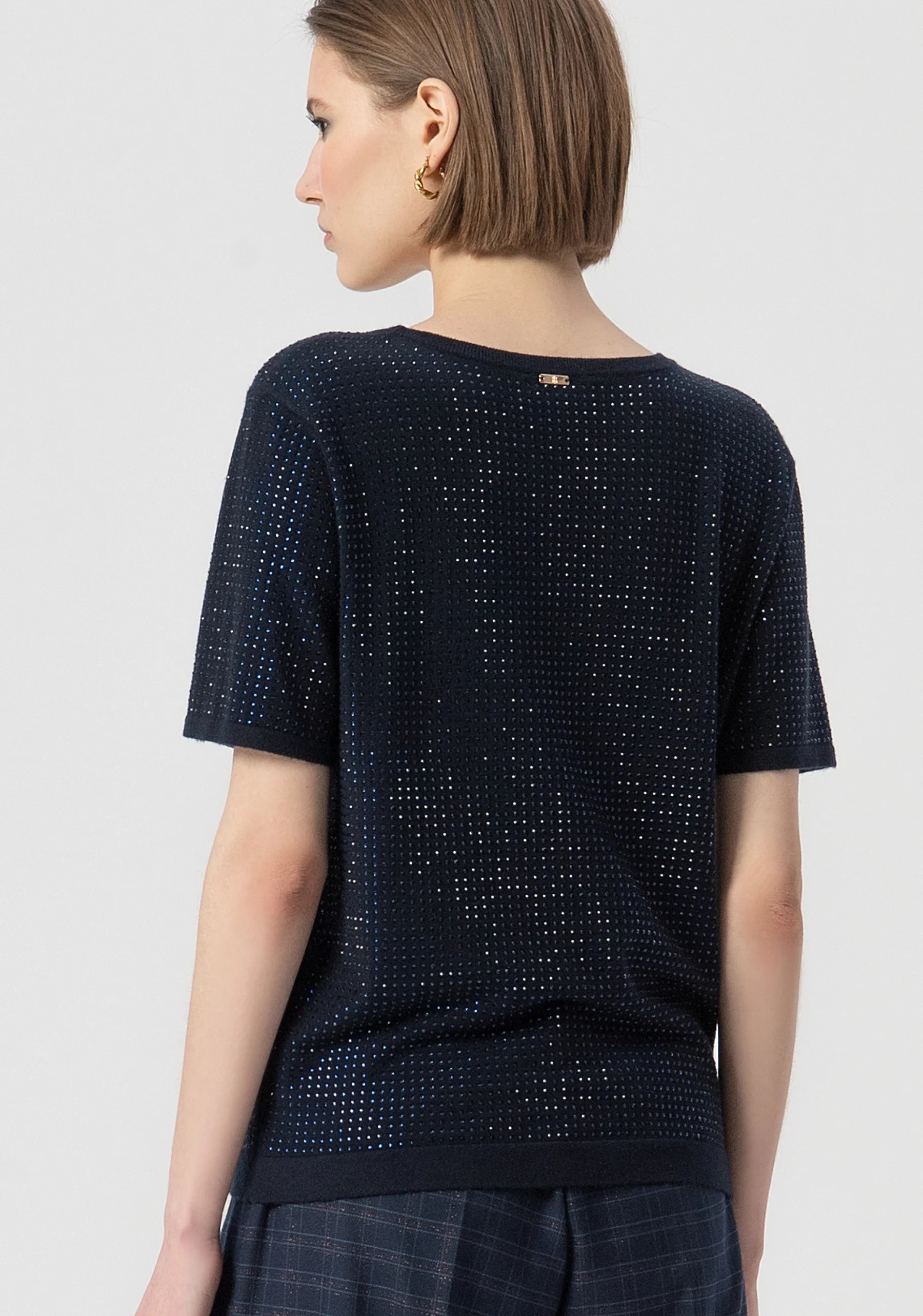 T-shirt regular con strass, girocollo, e con maniche corte.