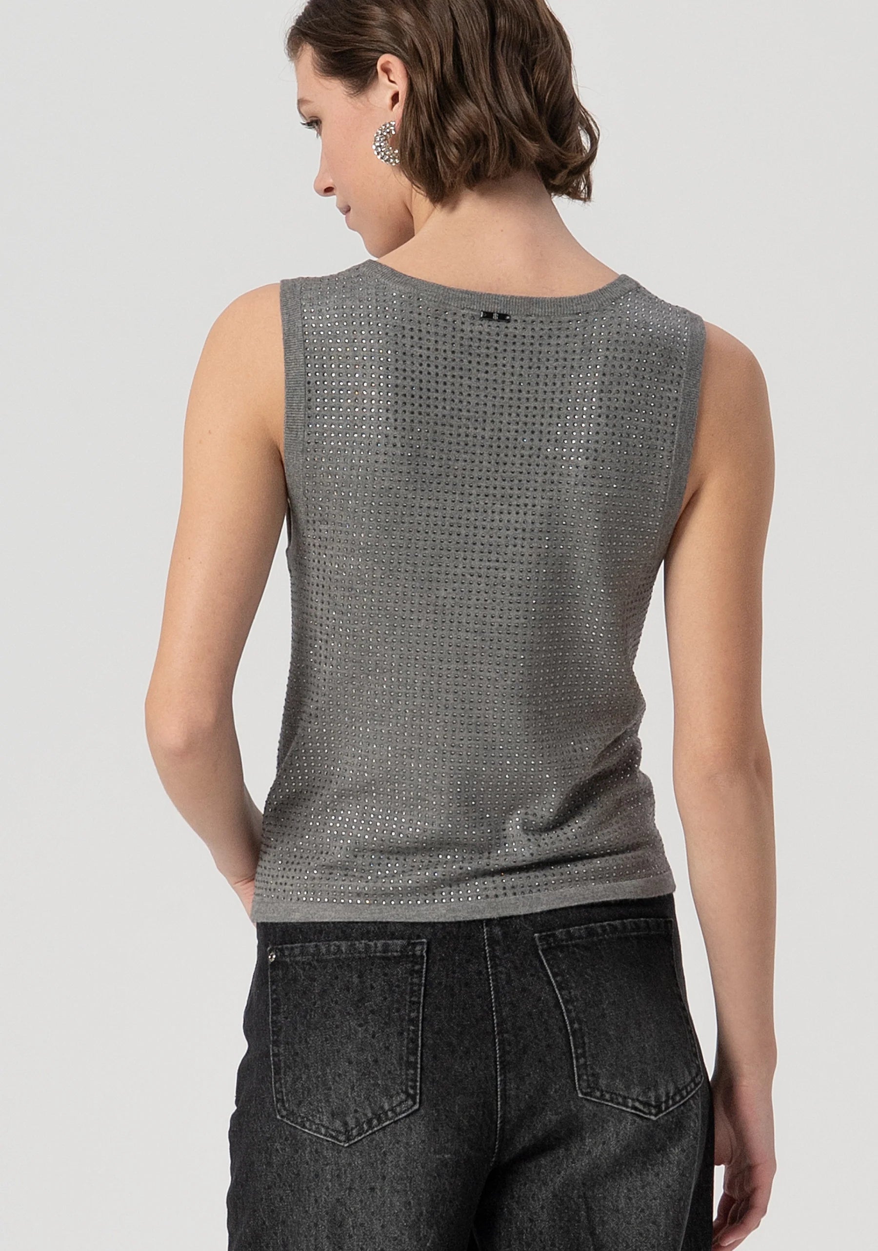 Top in maglia senza maniche con strass