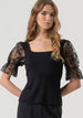 T-shirt slim con maniche corte a sbuffo in pizzo.