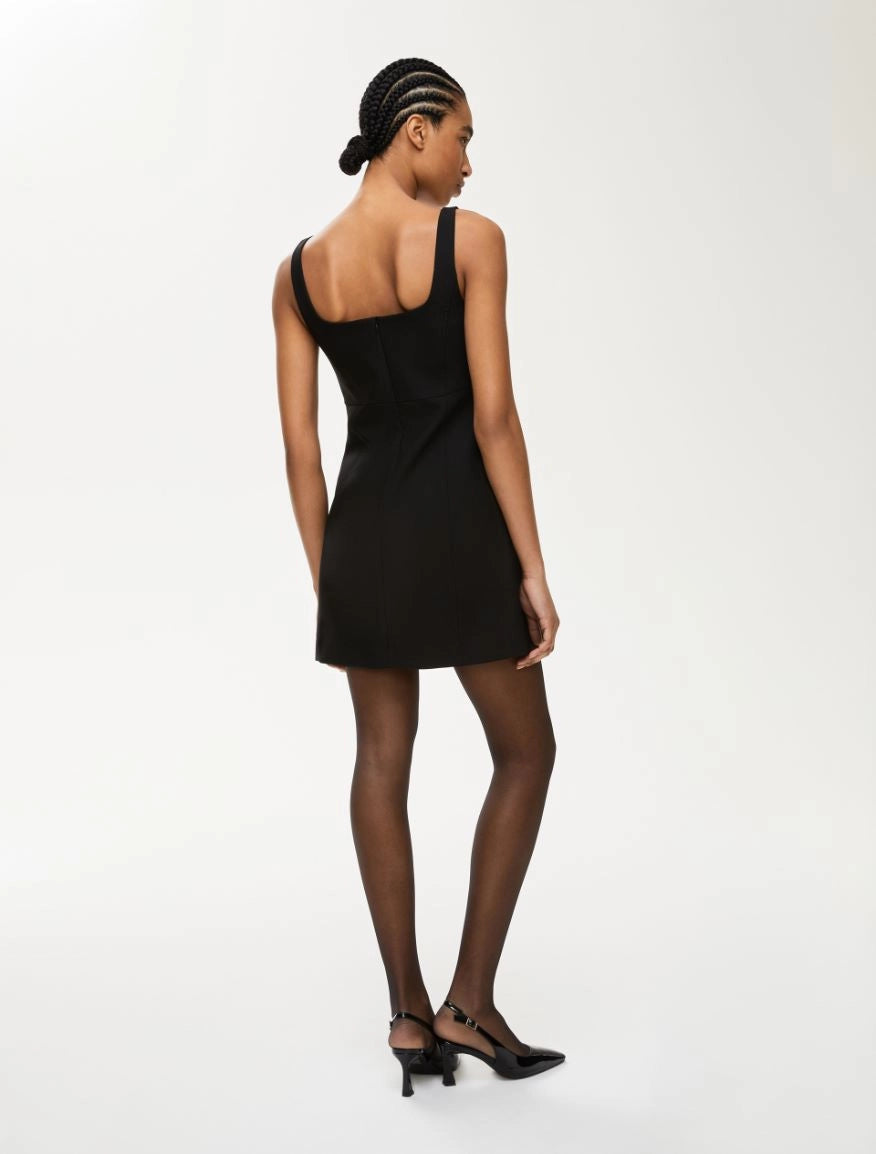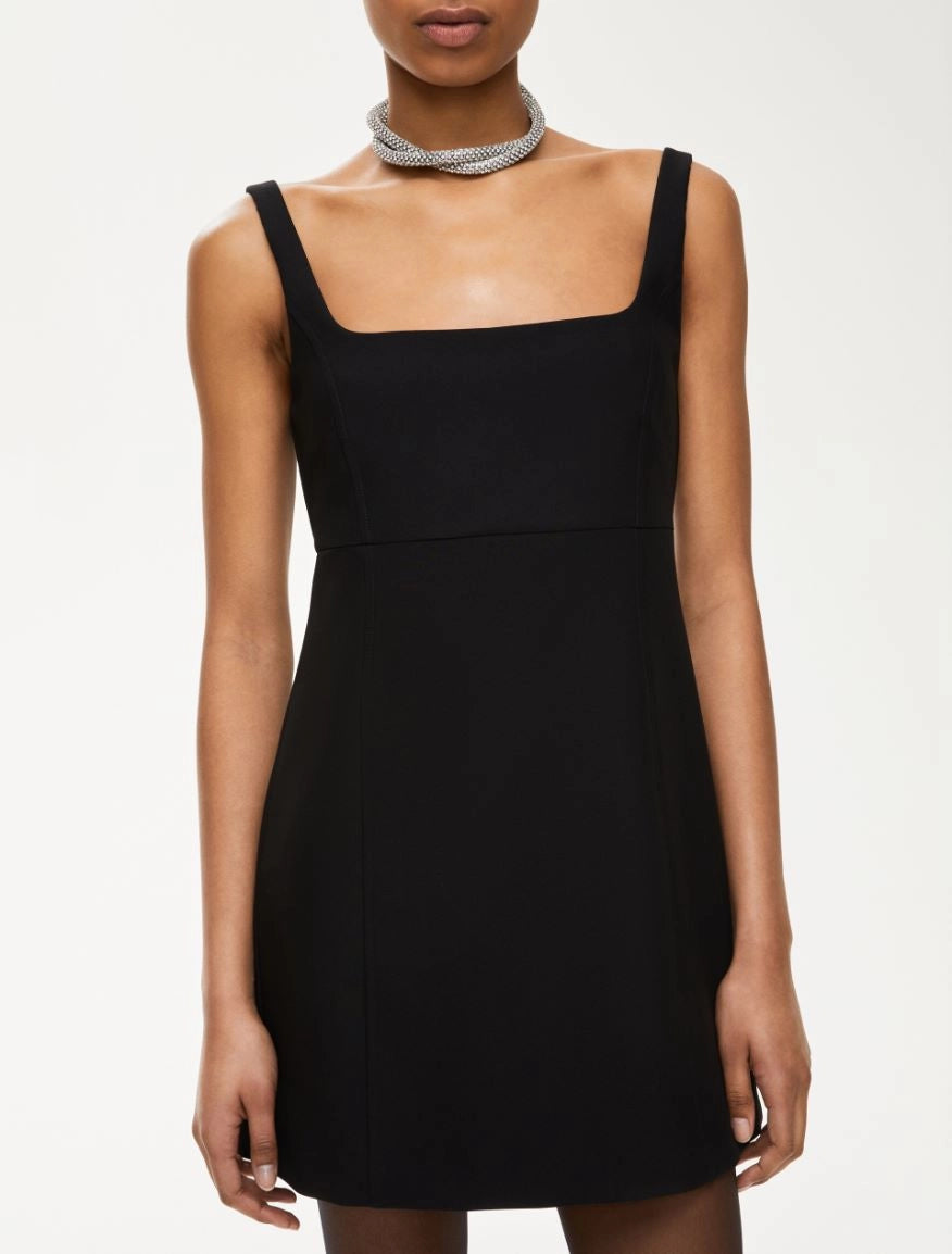 Abito corto in tessuto tecnico stretch dalla linea e vestibilità aderente.