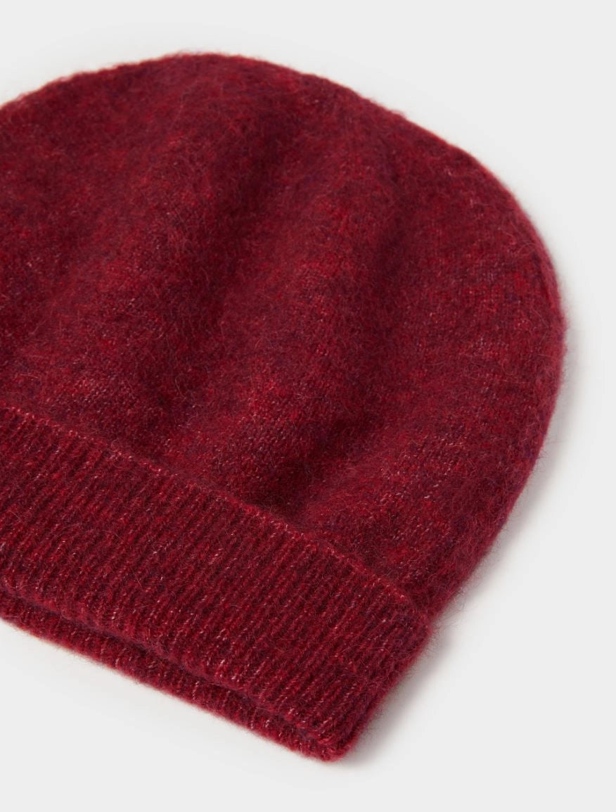 Cappello a cuffia in maglia stretch misto alpaca e lana dalla linea beanie e risvolto lavorato a costine.