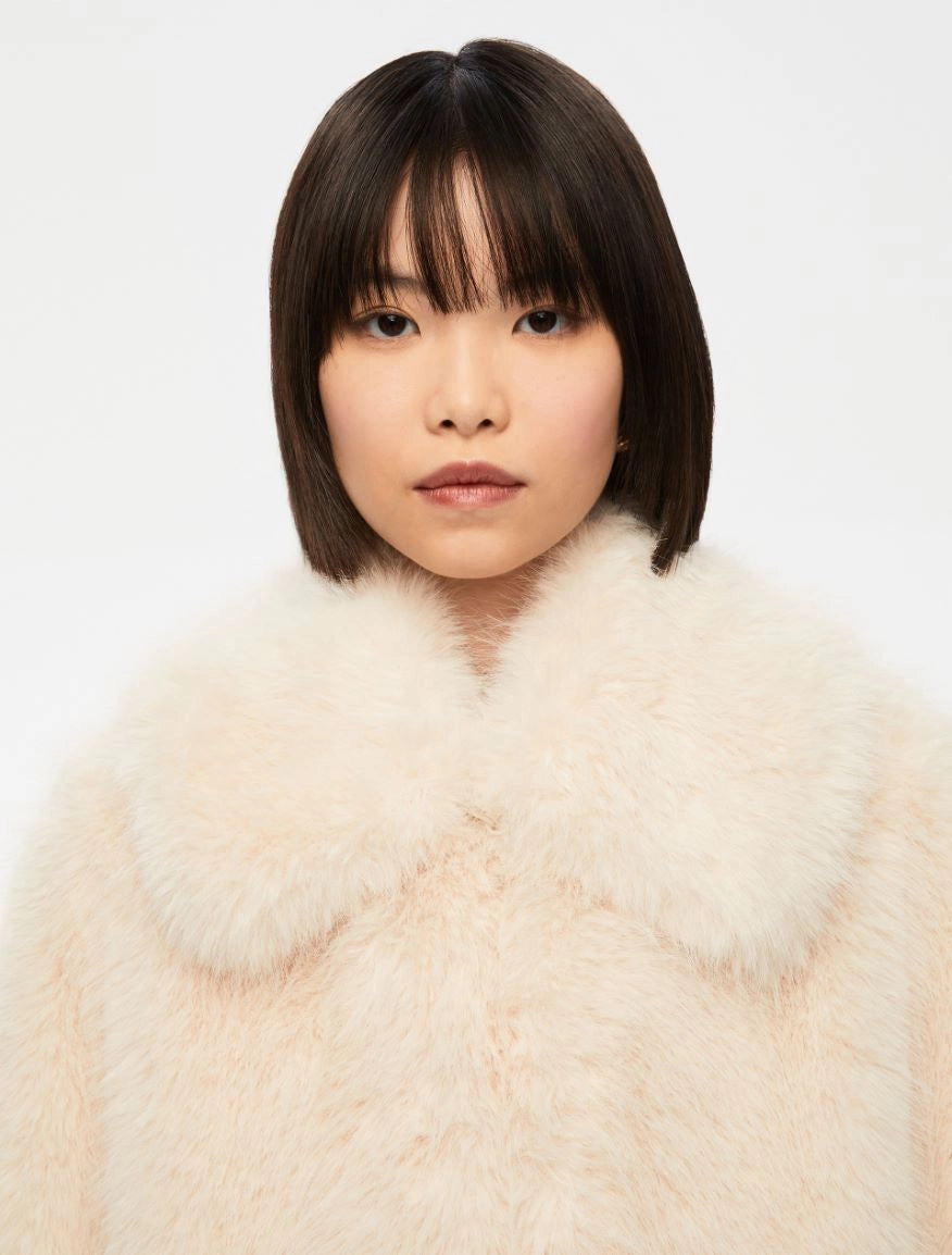 Colletto in tessuto fluffy, foderato internamente e con chiusura con gancio davanti.