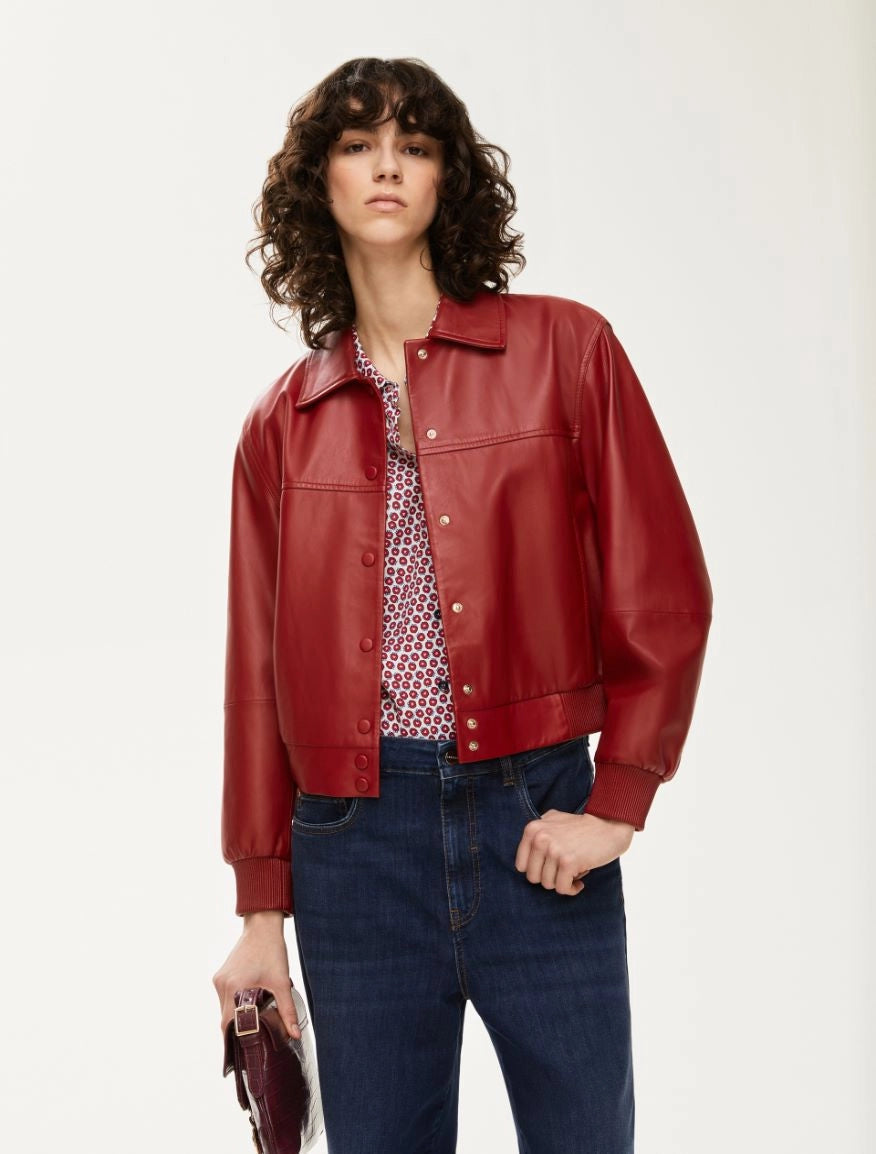 Giacca bomber in nappa dalla linea morbida e vestibilita' regolare. Colletto, maniche lunghe, chiusura con bottoni a pressione ricoperti.Tasche inserite nei fianchi, fondo e polsini con elastico interno. Capo foderato.
