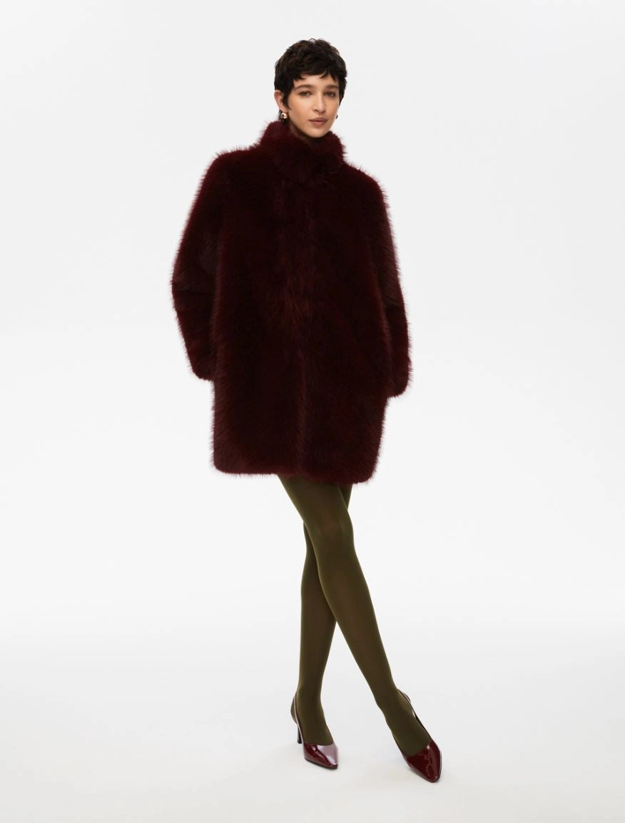 Cappotto realizzato in eco pelliccia dalla texture peluche e lavorazione tech per mantenerti al caldo senza rinunciare allo stile.