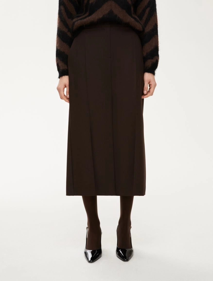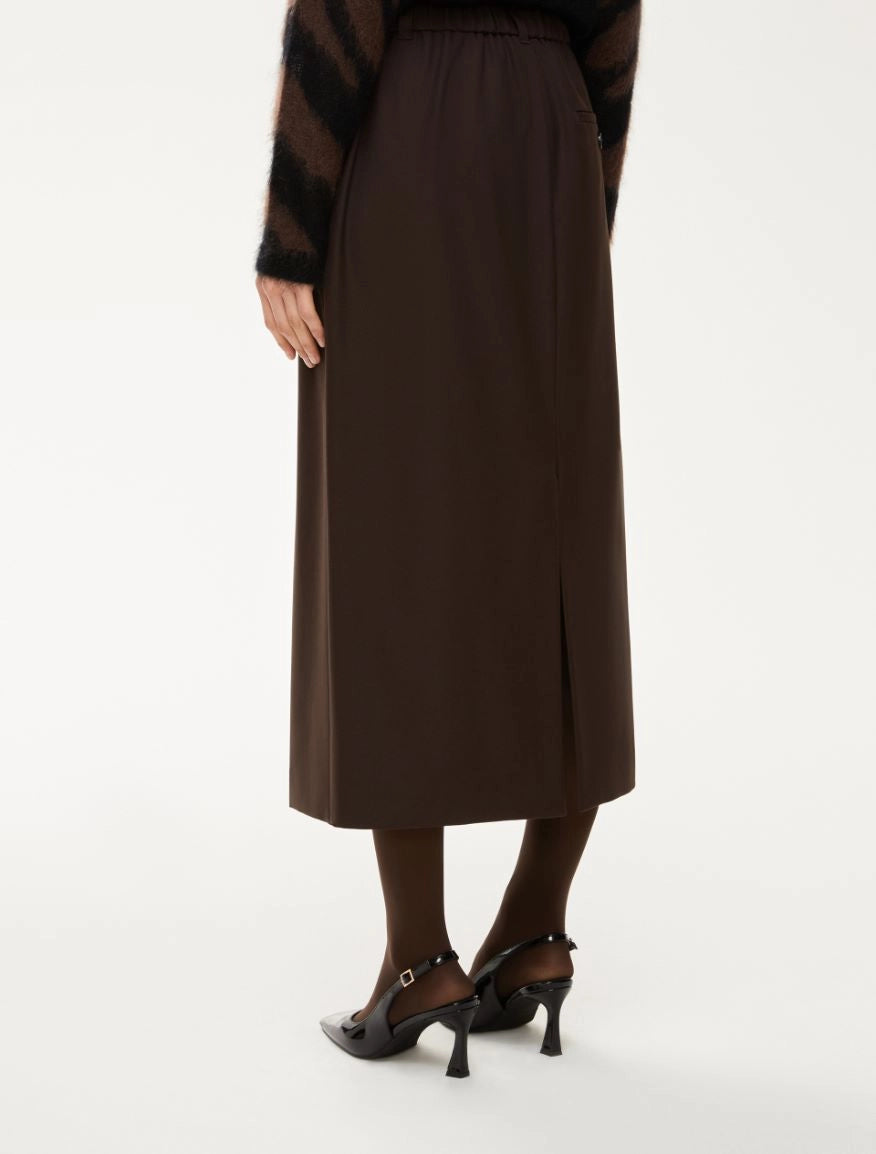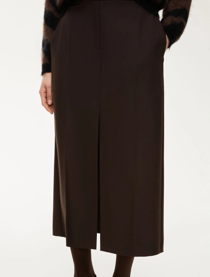 Gonna midi dritta in twill stretch con sensuali spacchi davanti e dietro.