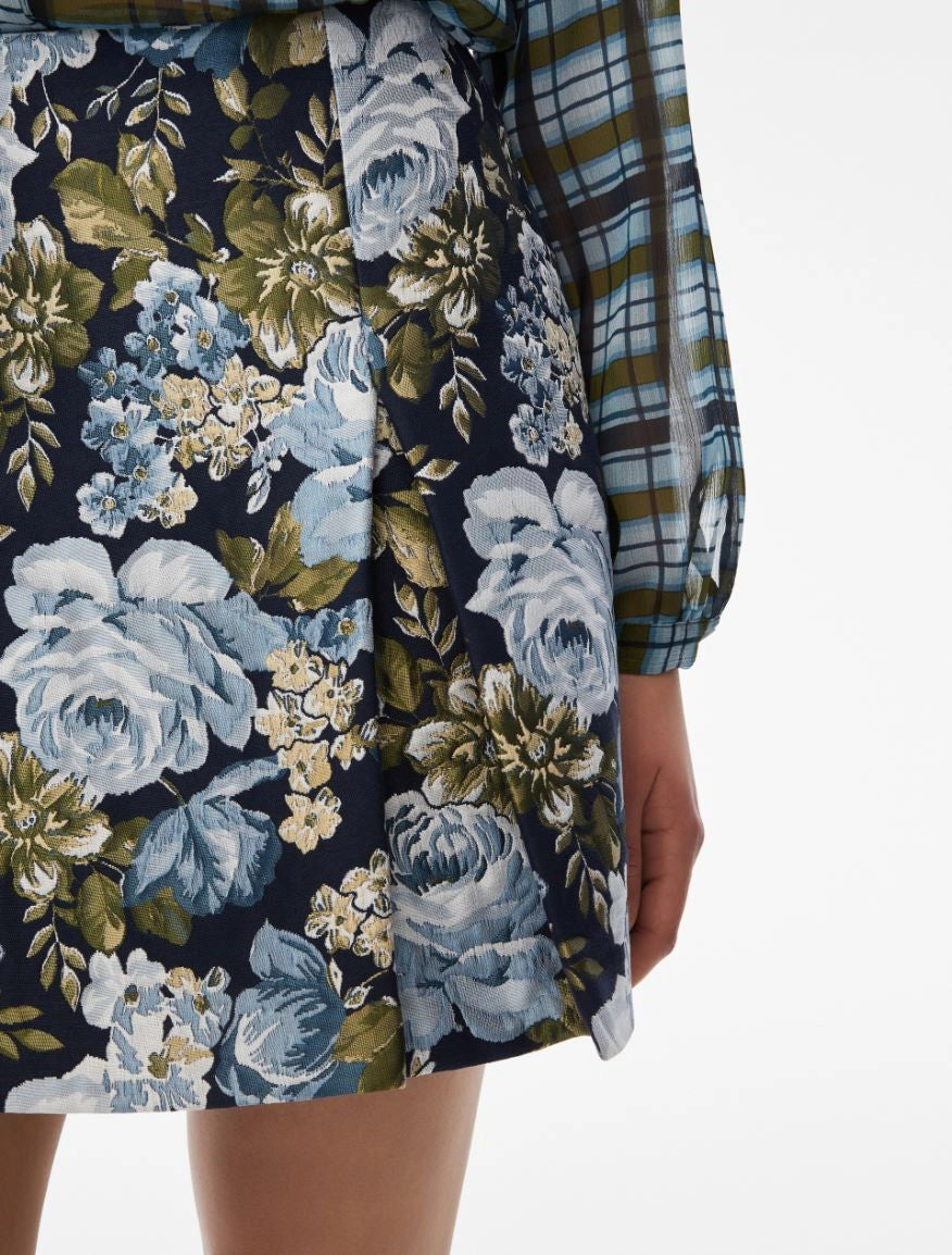 Gonna corta in tessuto jacquard con fantasia floreale.