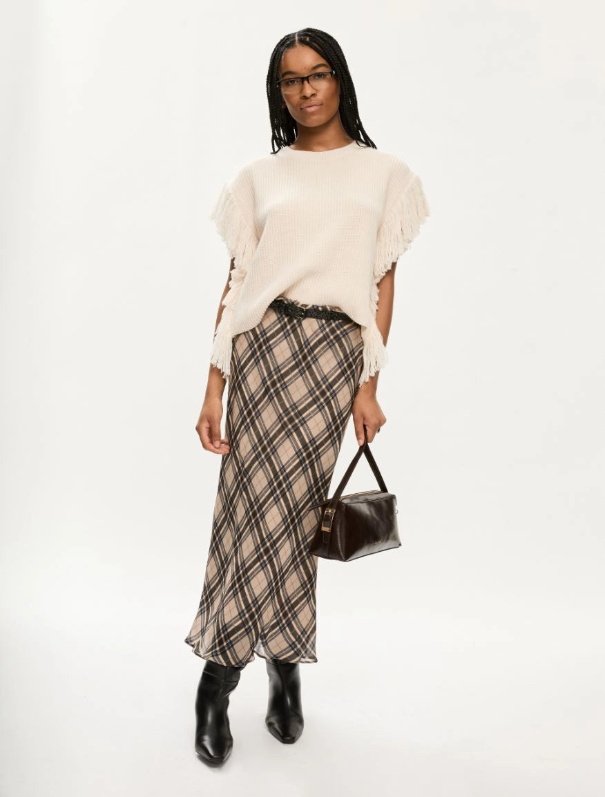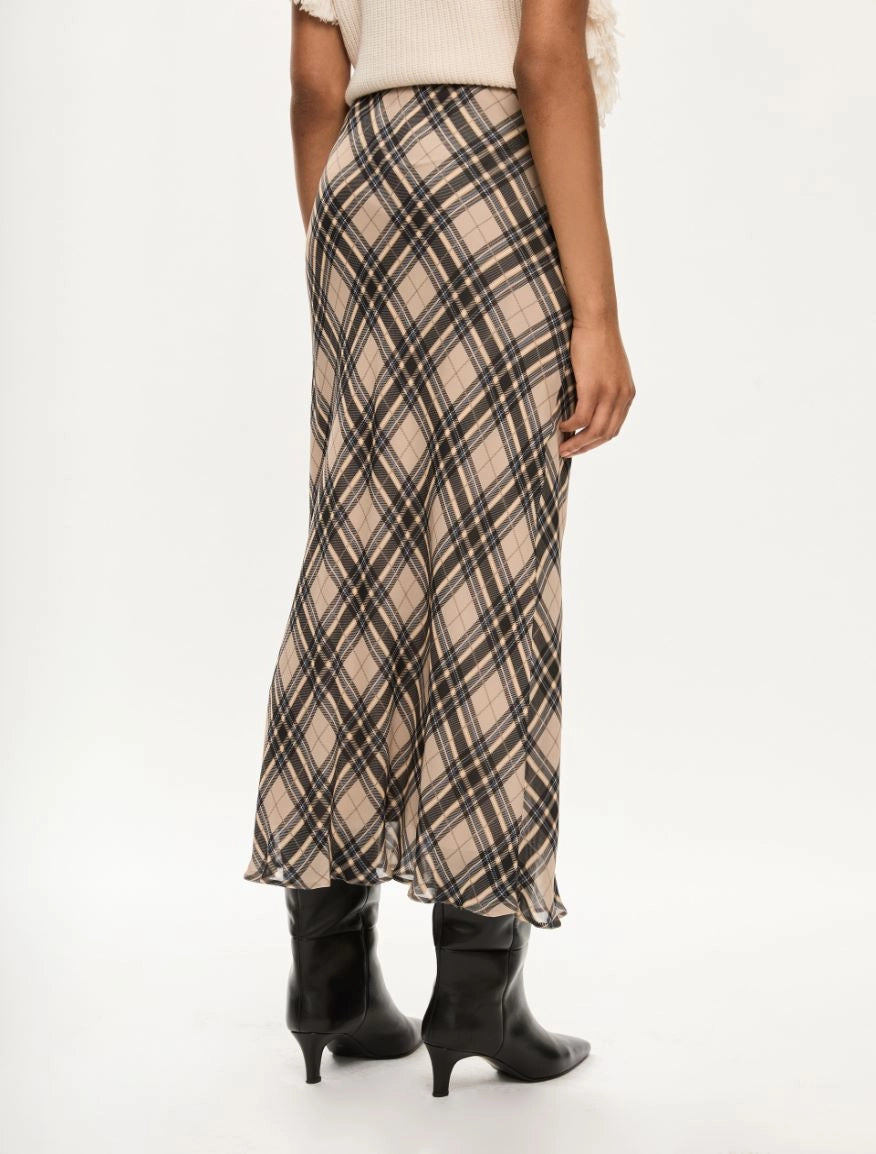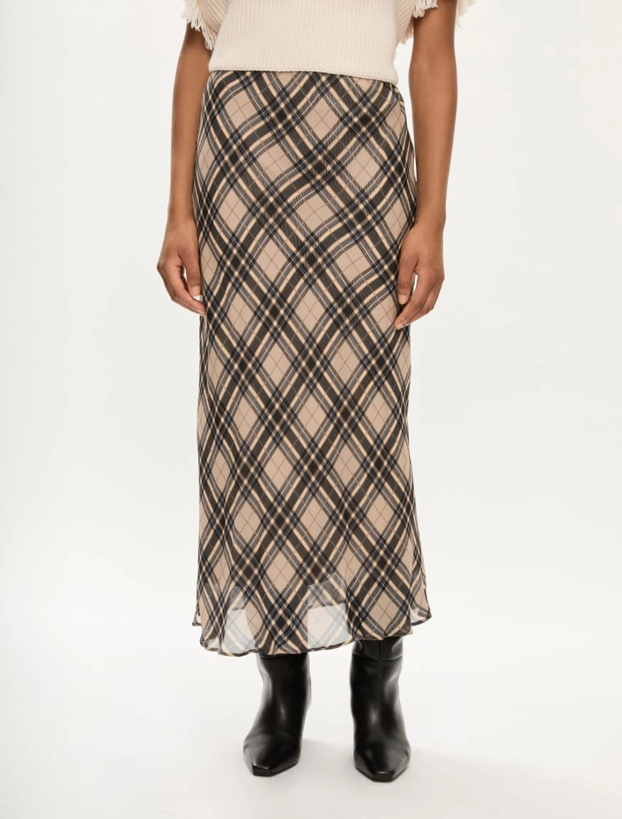 Gonna midi in georgette stampata dalla linea scivolata e dalla vestibilità regolare.