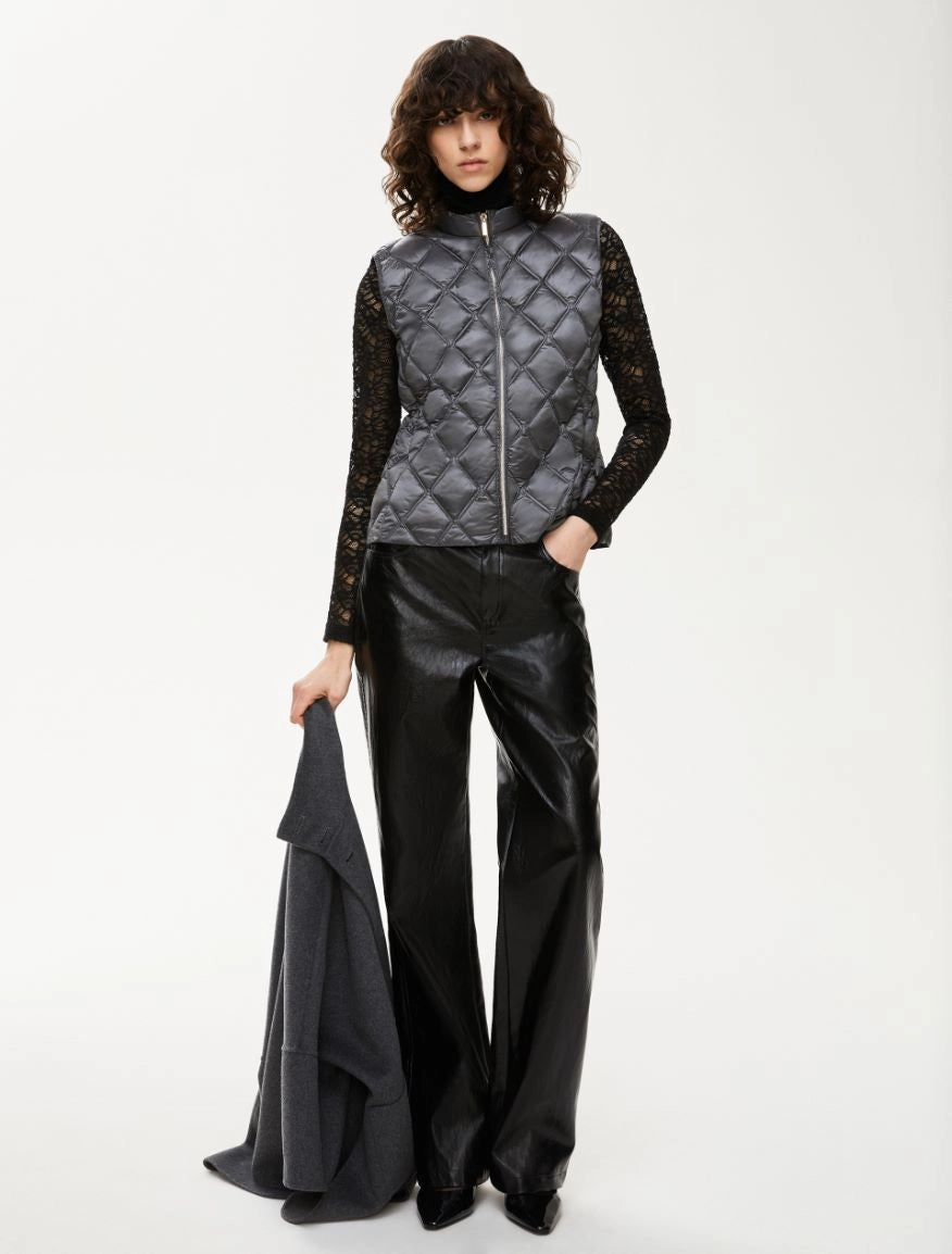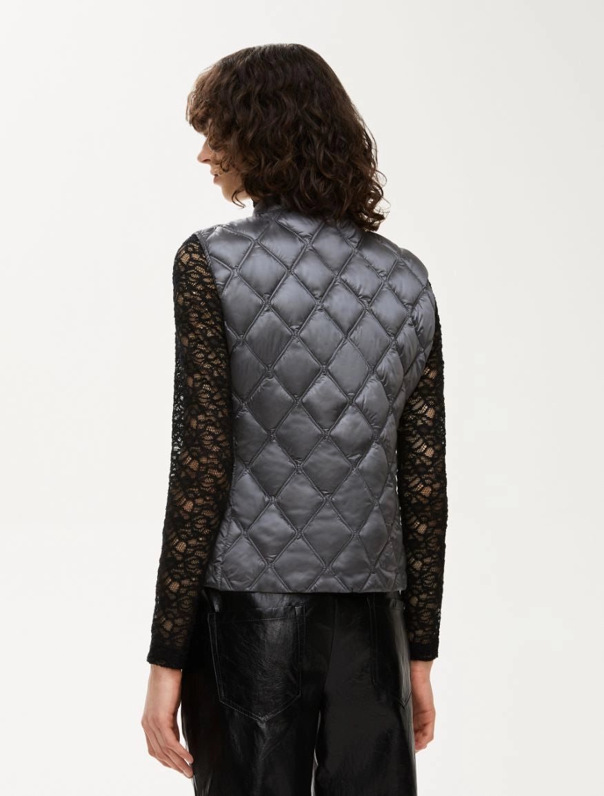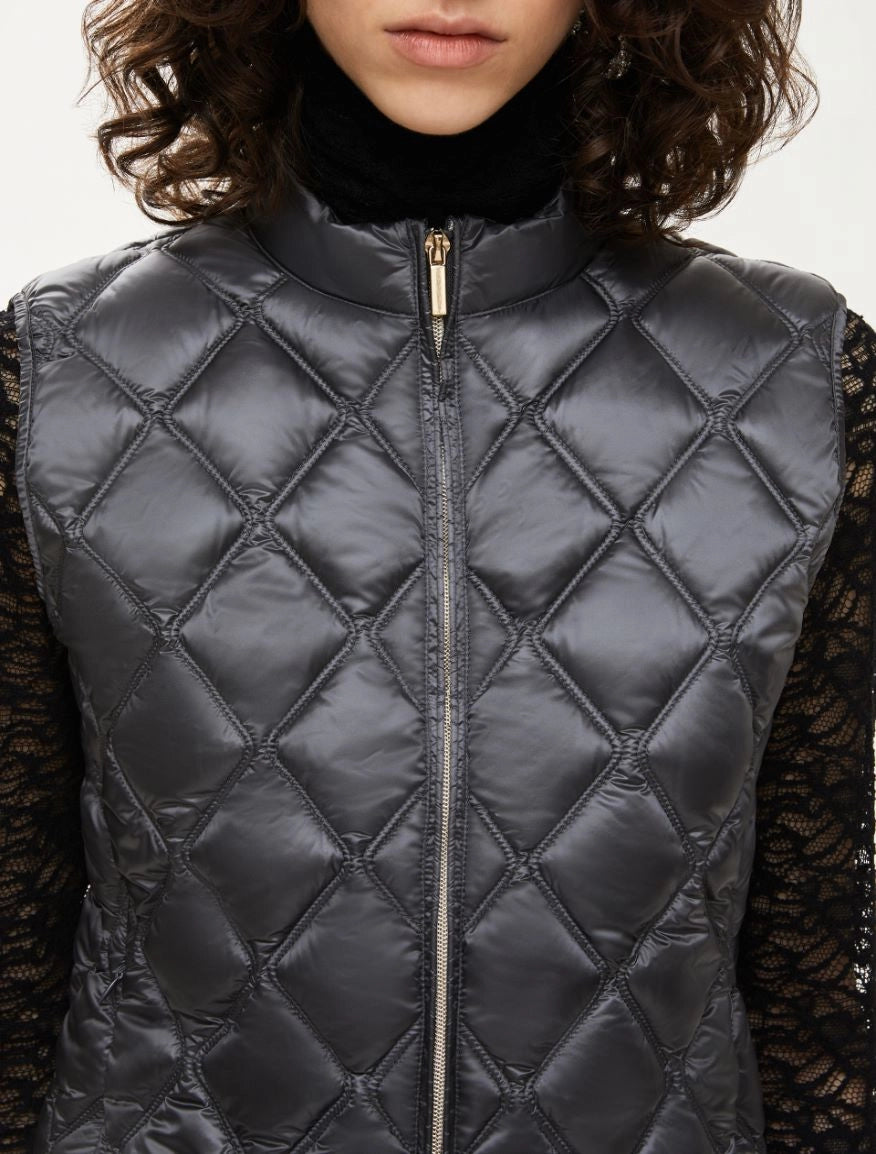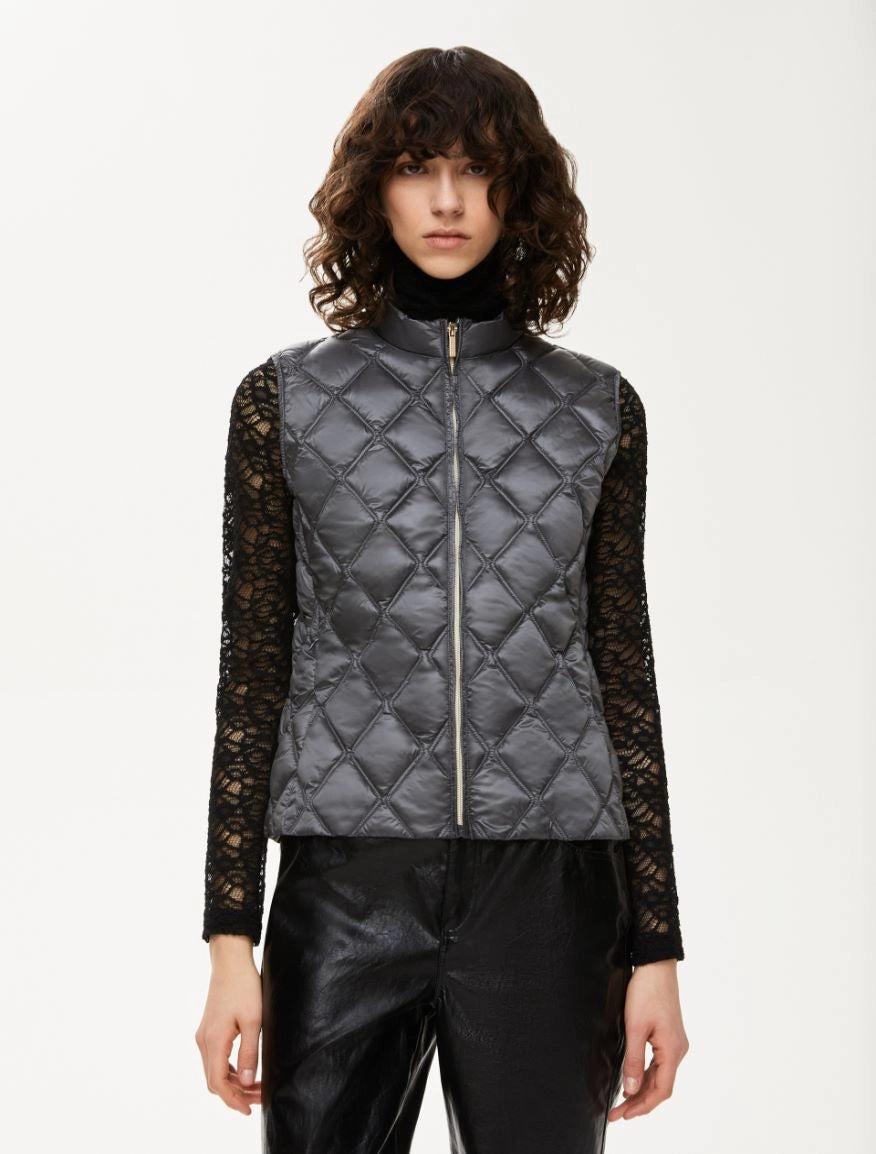 Gilet in nylon imbottito e trapuntato con chiusura a zip e collo alto.
