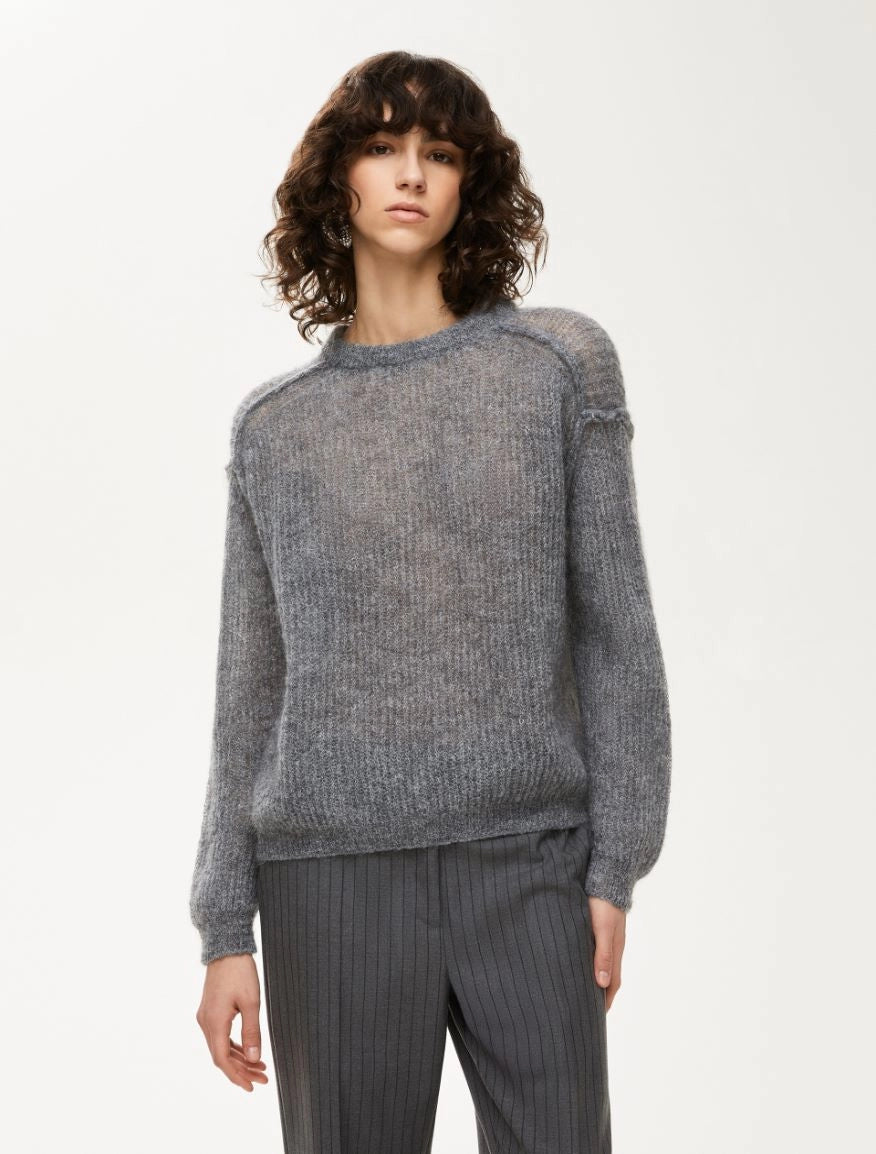 Maglia in misto mohair soffice e avvolgente dalla linea morbida cocoon.