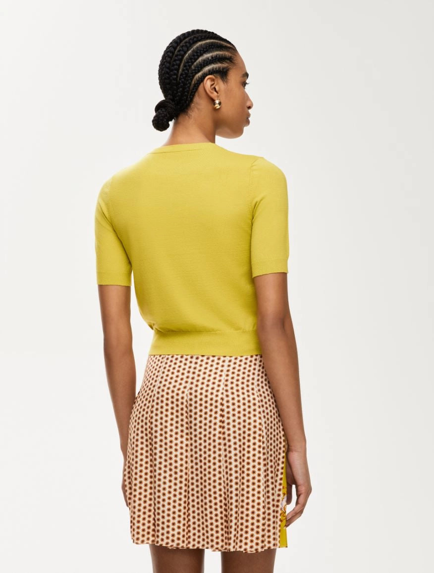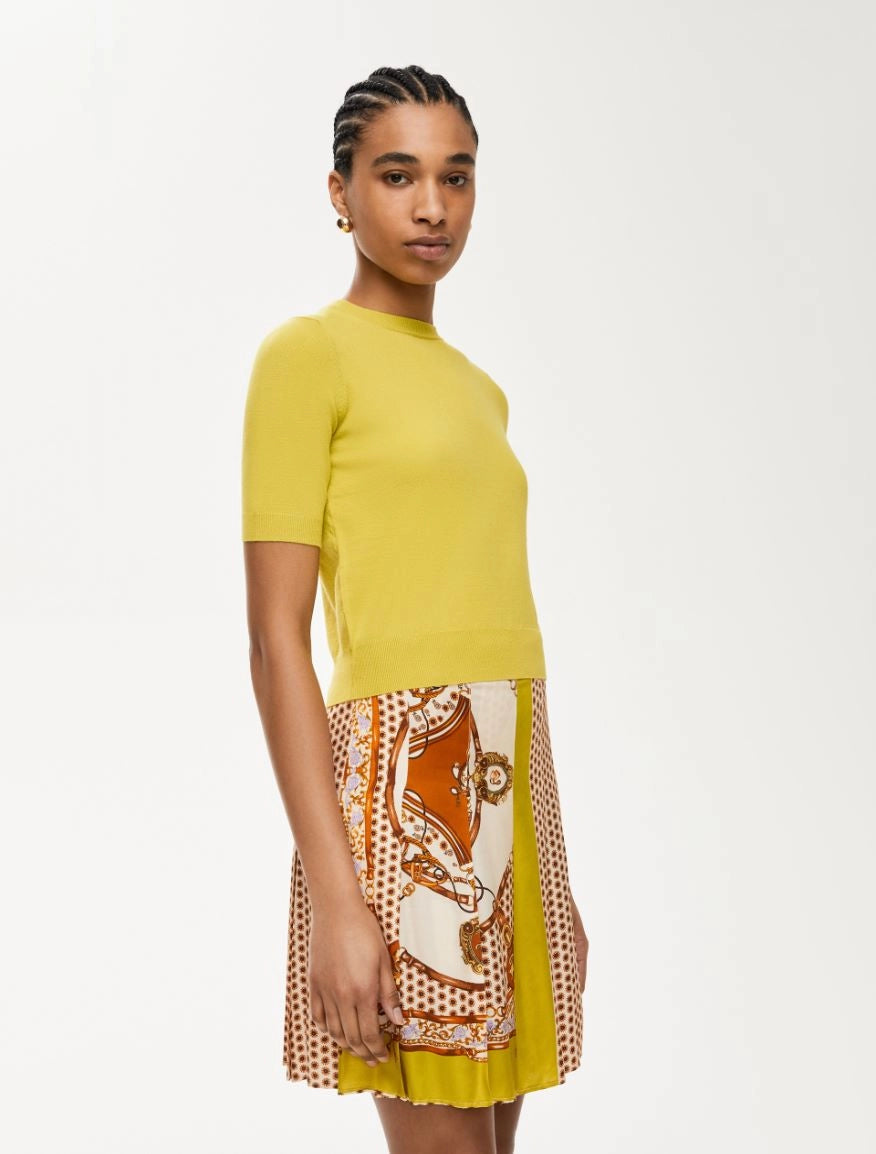 Maglia in misto viscosa dalla linea dritta e vestibilita' regolare. Presenta uno scollo tondo e maniche corte.