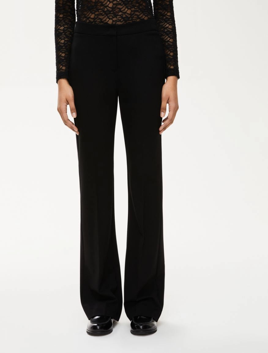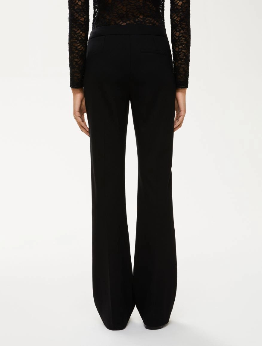 Pantaloni in jersey a zampa, in perfetto stile anni Settanta. Tasca a filetto sul retro e chiusura con gancio e zip nascosta.
