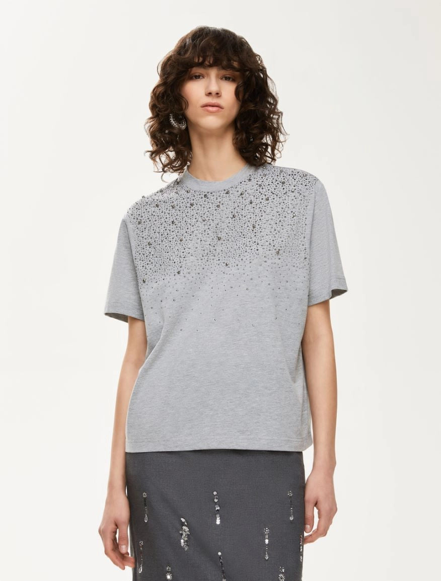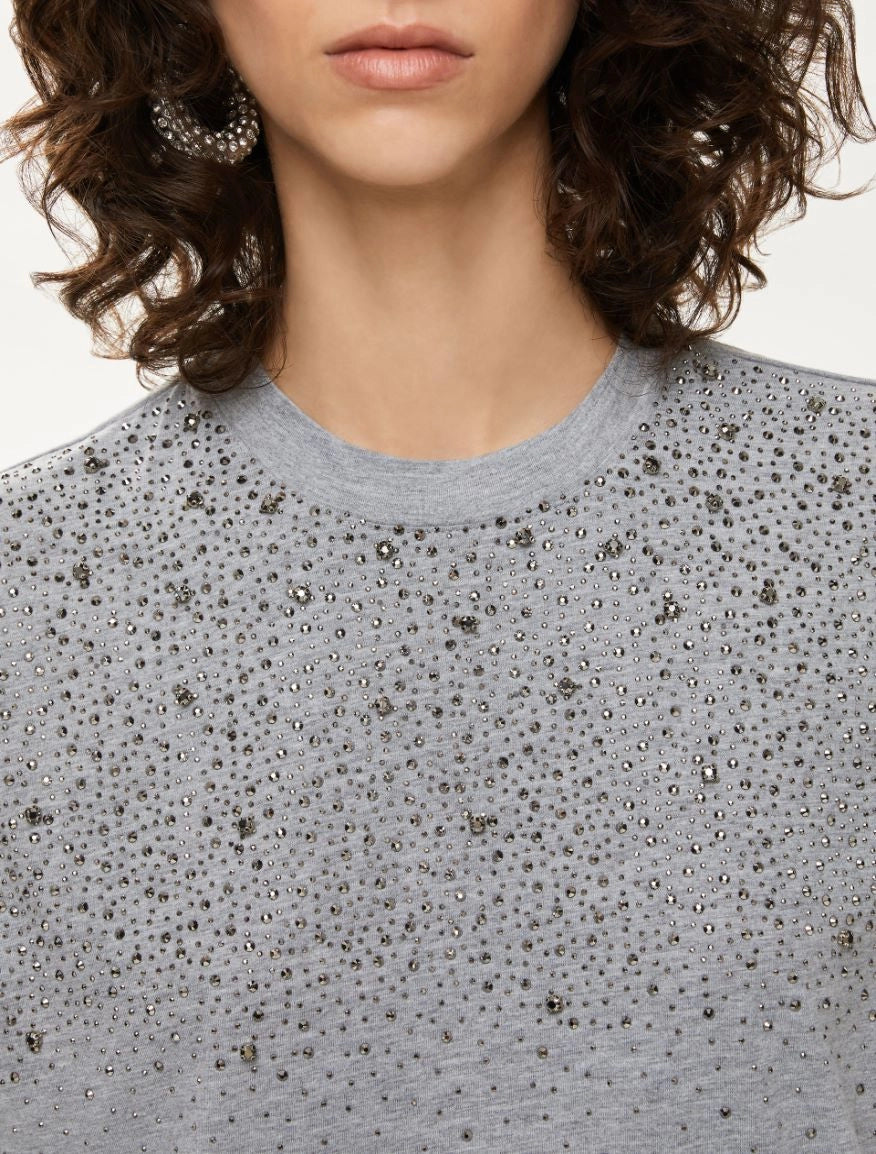 T-shirt maniche corte in jersey di cotone stampato e ricamato.