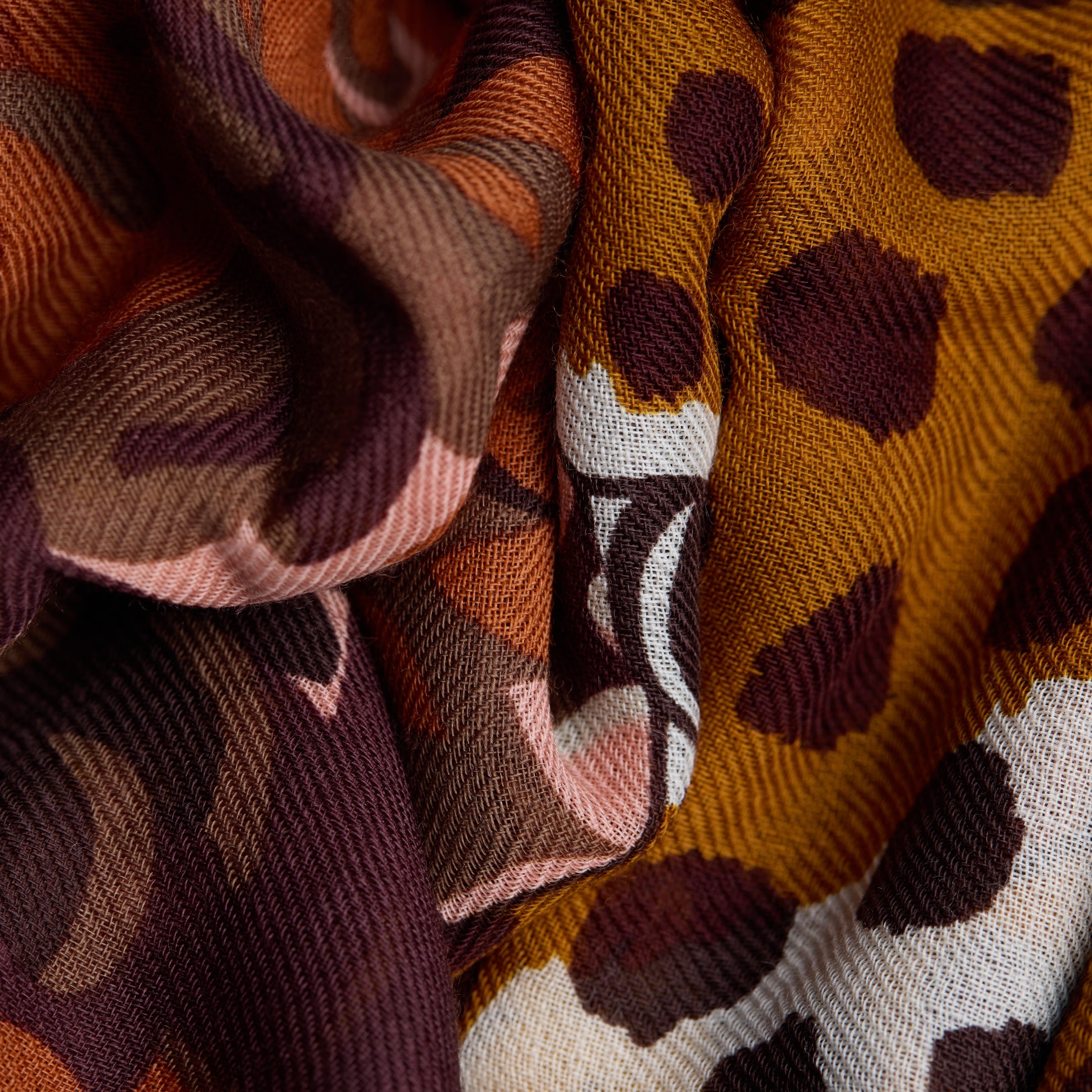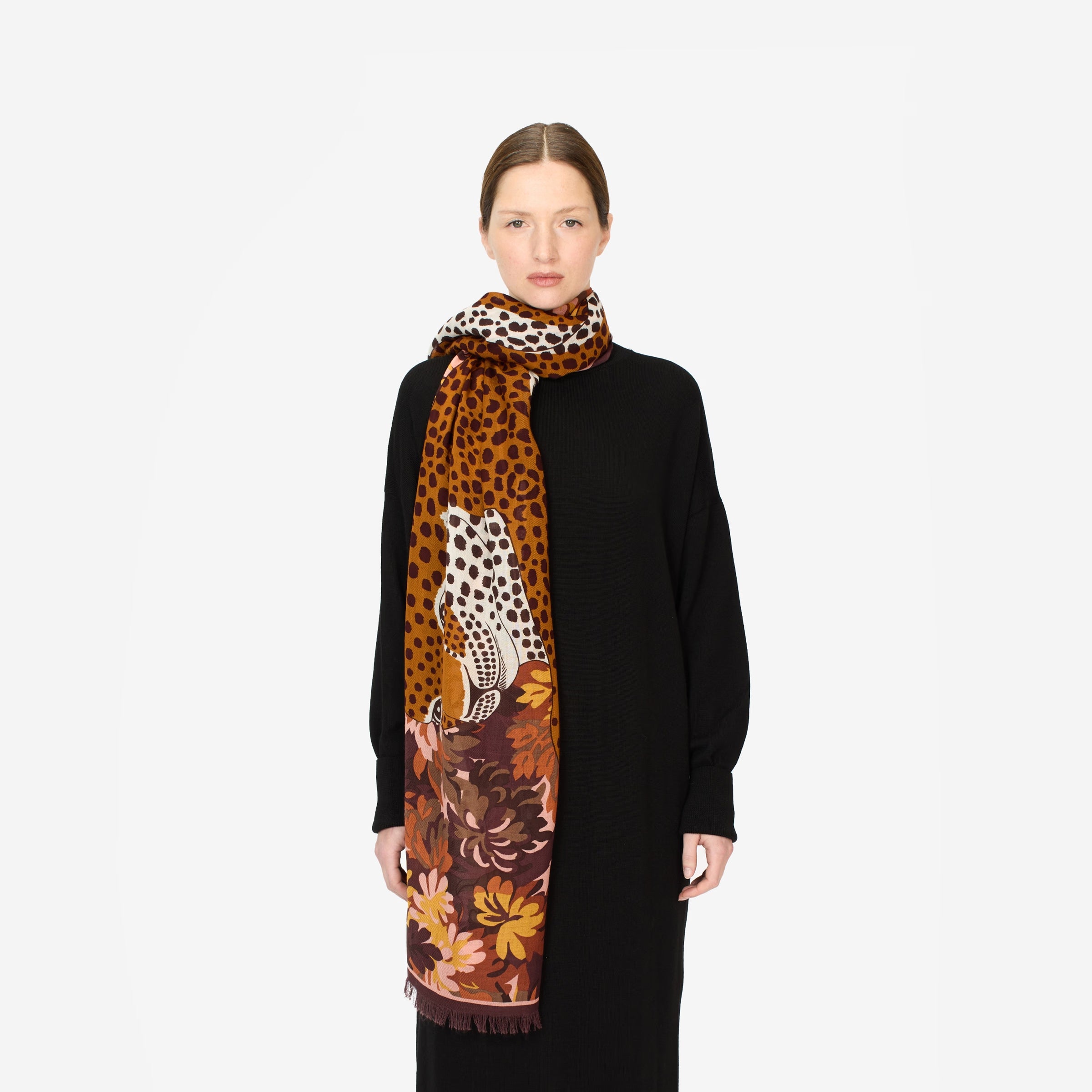 Morbida e leggera, questa sciarpa è il complemento ideale per il tuo look. Decorata con disegni creativi, valorizzerà il tuo outfit aggiungendo un tocco di originalità e di colore.