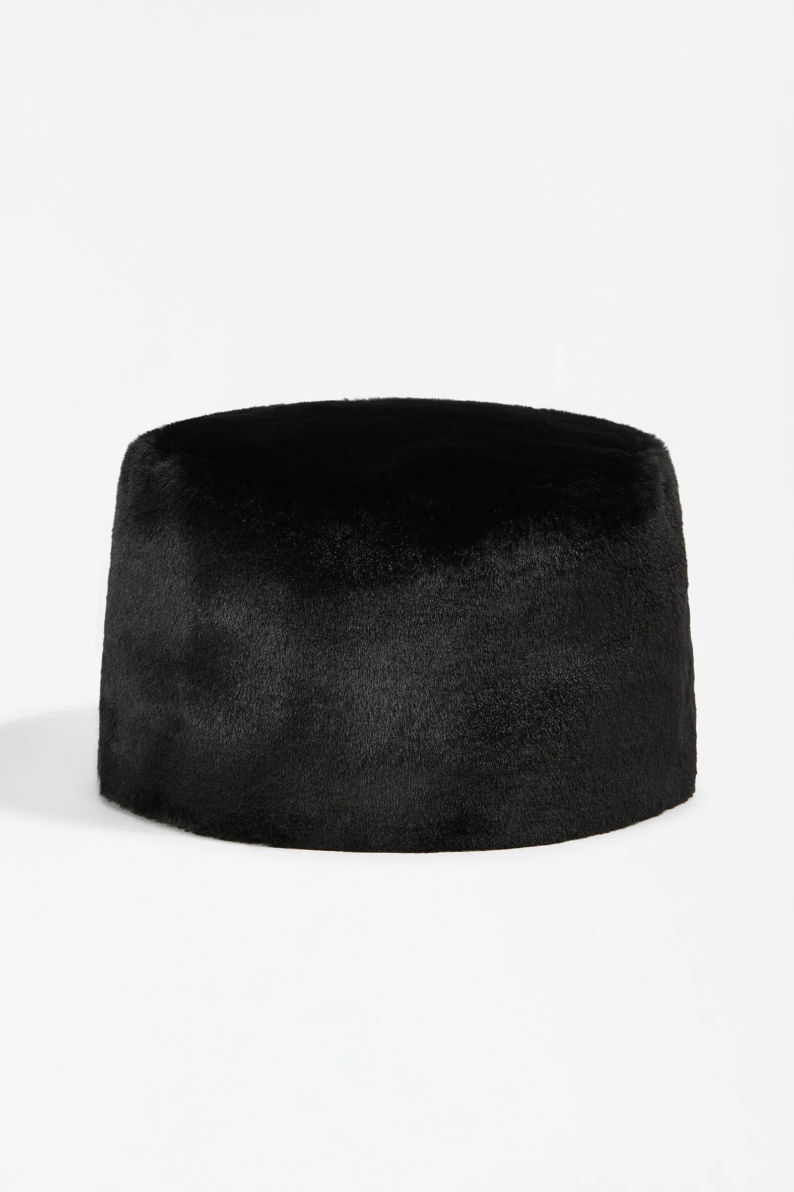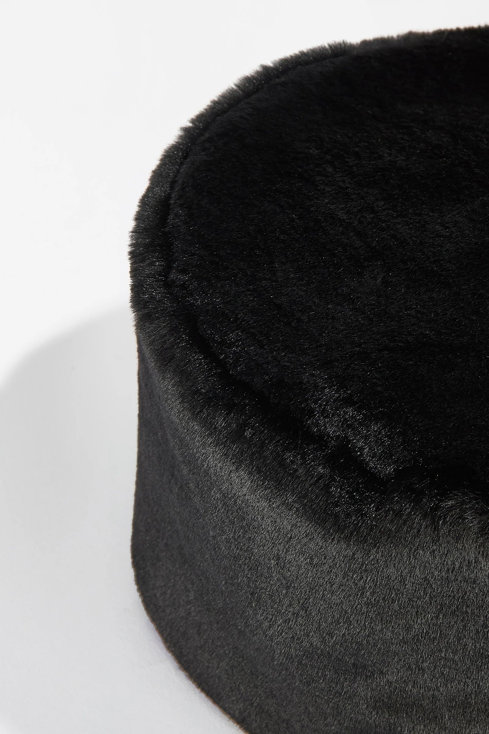 Capello modello Pillobox Elisabeth tondo in faux fur nero.