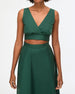 Il disegno geometrico dello scollo costruisce una linea pulita e moderna.