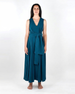 Abito lungo dal carattere fluido ed elegante, pensato per valorizzare la figura con un gioco di volumi morbidi e un punto vita definito.
