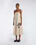 Abito dal design essenziale e raffinato, realizzato in tessuto leggero dalla texture naturale che dona carattere e autenticità alla silhouette. La linea minimal è impreziosita da un delicato motivo floreale grafico a contrasto, per un'eleganza moderna e ricercata.